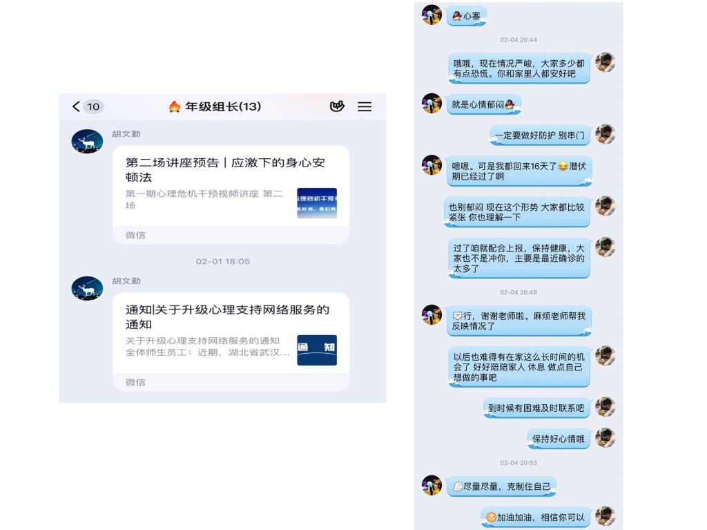 疫情发生以来,91论坛 副书记、辅导员时刻关心学生动态,针对处在特殊状况的同学进行单线联系、加倍关怀,着力解决问题,确保重点关注同学平安顺利。