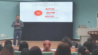 杨红燕老师,讲座主题为:技术驱动的热点图书同步翻译出版。 全院各系部教职工和同学们一同聆听了何老师的精彩讲解。