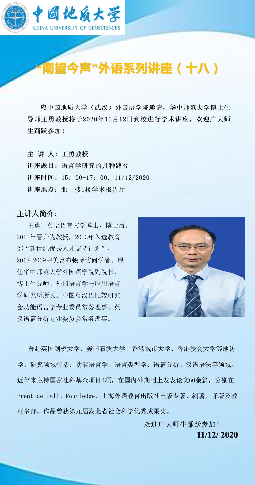 “南望今声”外语论坛系列讲座(十八)通知