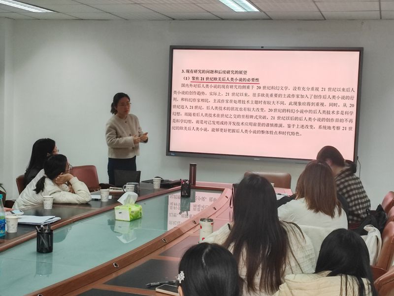 在答疑环节,张璐老师针对师生提出的问题给予了详细解答,分享了自己如何从阅读文献找到新的写作思路,以及如何选择和解读后人类相关的文学作品。她的见解和经验为师生在未来的科研和项目申请中提供了宝贵的指导。