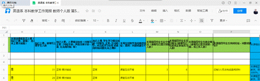 为方便及时统计学生的就业落实情况,英语系通过腾讯文档小程序要求全系老师们每周五之前更新教师版“本科教学工作周报”数据,除在线上课和毕业论文、实习进展情况之外,还专门设置了就业版块。