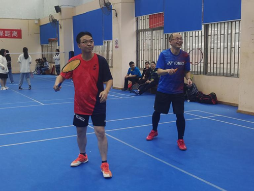 接着是双打比赛。赛场上不仅有意气风发的学生,经验老到的老师们更是不甘示弱,步步稳健,球球精准,师生之间的切磋看点十足,现场欢呼不断。