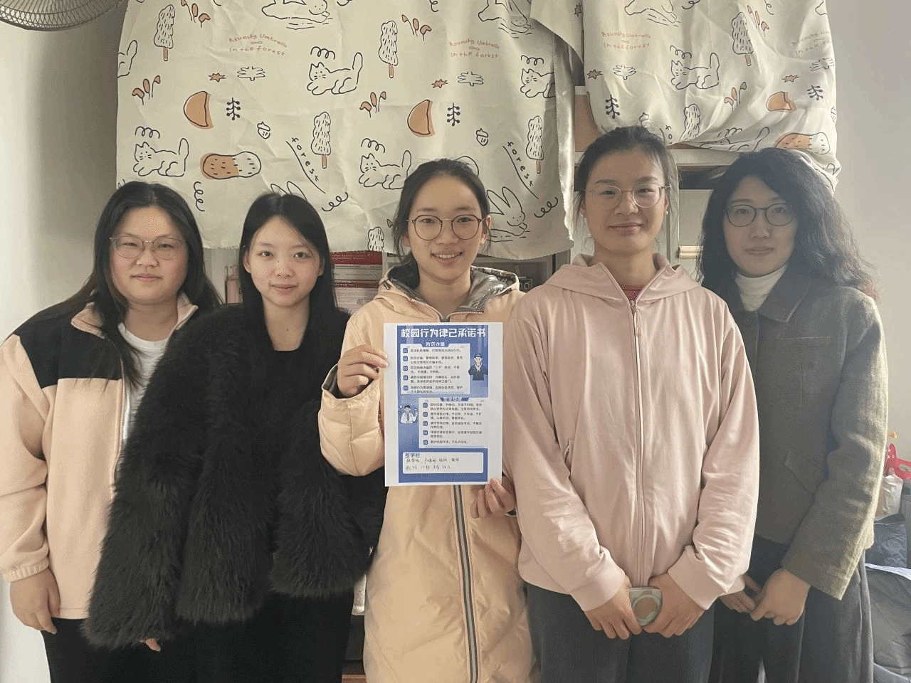 本研学生积极参与本次活动,校园行为律己承诺书发放到寝室后,同学们以寝室为单位进行承诺书的研读和学习探讨,明确了新学期学习生活律己要求,熟读了反诈提醒与安全建议,进行了深入的反思与学习,并郑重地在承诺书签字栏处留下签名,表达了对校园安全稳定的支持与承诺。这一活动不仅增强了学生的自律意识,也进一步凝聚了集体力量,为构建安全和谐的校园环境奠定了坚实基础。