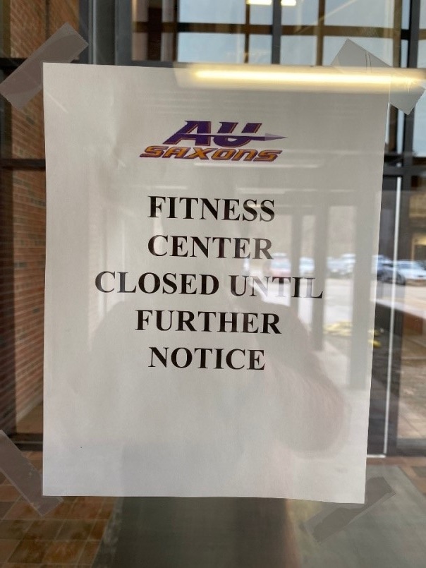 (图五 学校的教学楼、办公楼以及体育馆都陆陆续续关闭。)