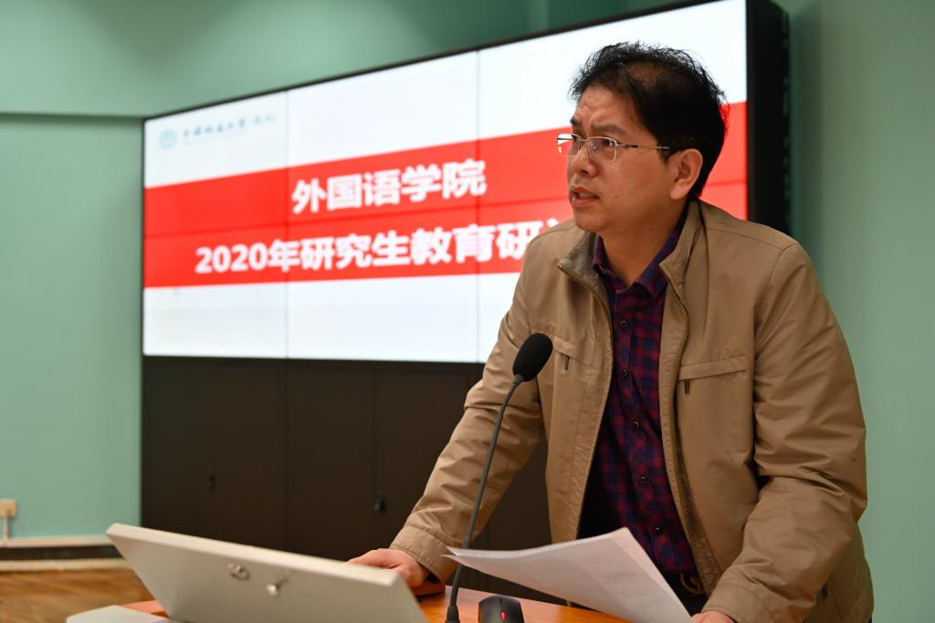 学院党政班子代表副院长刘芳以“公外研究生教学的现状与困境”为题,阐述了非英语专业研究生教学现状与发展瓶颈,希望学校和学院能够给予大学英语部进人指标,建立专门的研究生教研室,将公外研究生教学课时计入聘期考核等。