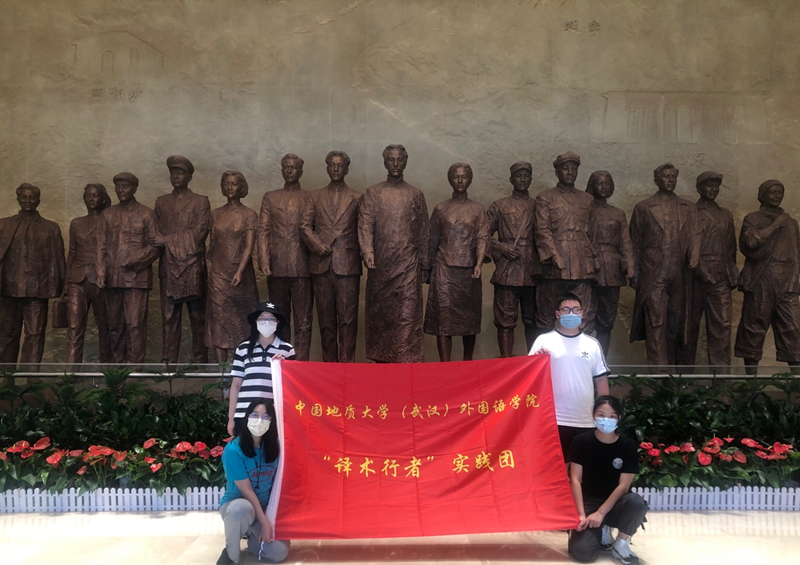 本科生。为助力武汉市城市国际形象提升,团队自创建之初关注武汉公共服务场所公示语错译,并提交调研报告, 最终被武汉市政府采纳。2020年,团队关注湖北地区红色景点的英译现状,进行了实地走访和研究。2021年,为庆祝中国共产党成立100周年,团队通过讲述实践故事、实践感悟、实践收获,让更多的青年学子一同走进红色景点,感悟革命精神。团队在学院发起团支部红色景点打卡活动;通过学校公众号积极向同学们讲述红色故事,陆续开展主题团日宣讲;制作红色景点宣传展板,组织主题展览,吸引了全校众多师生,特别是来自10多个国家的外教和留学生的驻足和交流。中国青年网、中国改革报、湖北日报等也相继报道了团队调研和活动事迹。