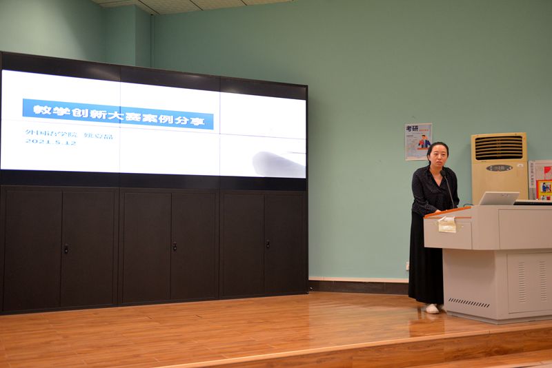 于2021年5月13日下午在北一楼报告厅举行“推进教学创新,落实课程思政”为主题的外语教育优秀案例分享会,会议由杨红燕副院长主持,学院全体教师参加了会议。