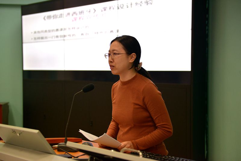 冯迪老师向大家展示了自己参加外研社“教学之星”大赛的课程设计,冯老师将莎士比亚戏剧与中国戏曲元素结合,体现了中西文化融合,也展现了英语课程专业性与育人性有机结合。