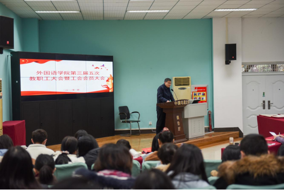 2021年工作报告》。他从党建与思想政治教育、教育教学、科学研究、人才培养和社会服务工作等方面介绍了2021年学院取得的工作成果。还向大会作了学院2021年财务报告。