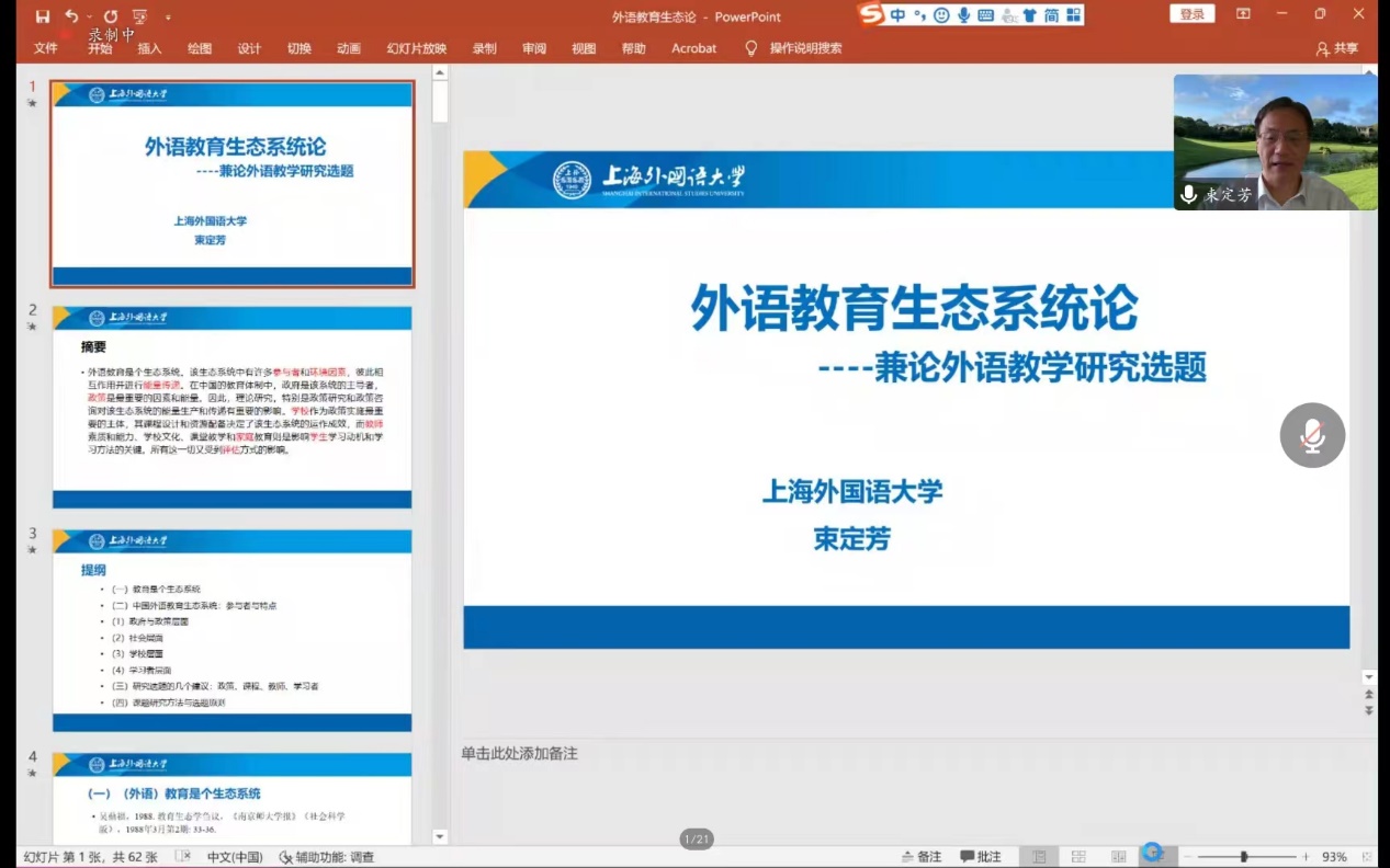 “南望今声”系列讲座如期举行。上海外国语大学大学博士生导师束定芳教授应邀在线上为91论坛