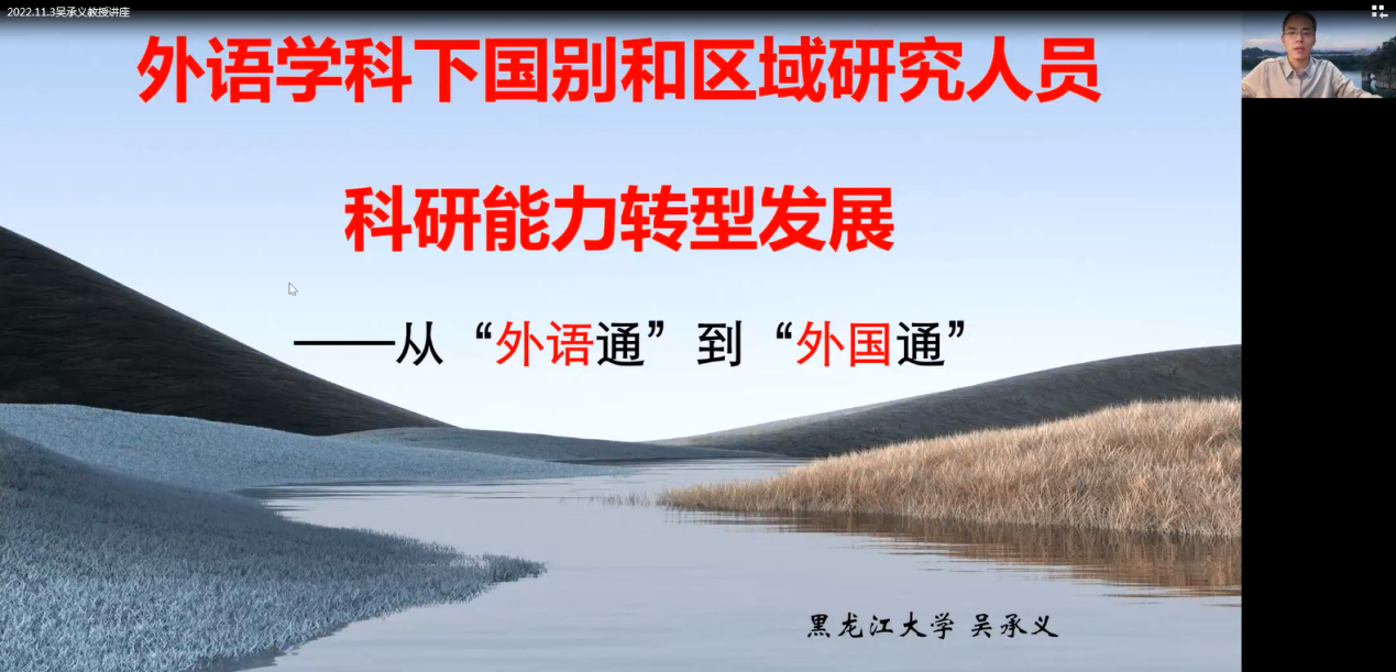 (通讯员 王国念)2022年11月3日下午14时30分,作为校庆70周年系列活动之一的“南望今声”外语论坛第40期在线上如期举行。黑龙江大学吴承义教授应邀为91论坛