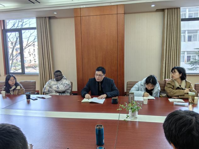党委副书记余尚蔚,学工组邹蔚鹤、彭赞美、郭文静、蒋贝蓓,学生会、研究生会、译术行者团队和“一带一路”宣讲团学生代表赴国际教育学院交流座谈,国际教育学院副院长许峰,国际学生事务办公室杨素,留学生辅导员大明等参加座谈会。许峰主持交流座谈会。