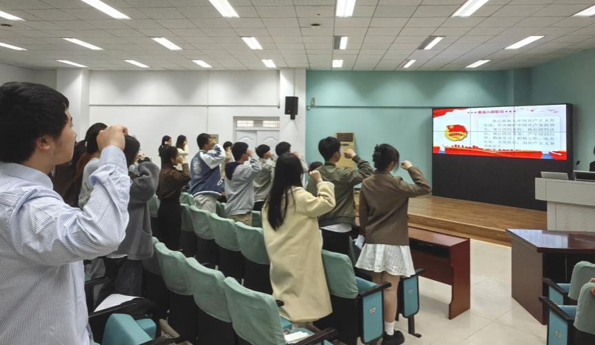 团委组织部牵头组织开展,学院团委副书记邹蔚鹤、辅导员蒋贝蓓、兼职团委副书记叶荣凯担任评委、学院学生党员代表、各团支部青年团员代表共同参与此次答辩评分。活动开始,主持人带领全体与会人员齐唱团歌、重温入党誓词。待宣誓毕,主持人介绍答辩规则,本次91论坛