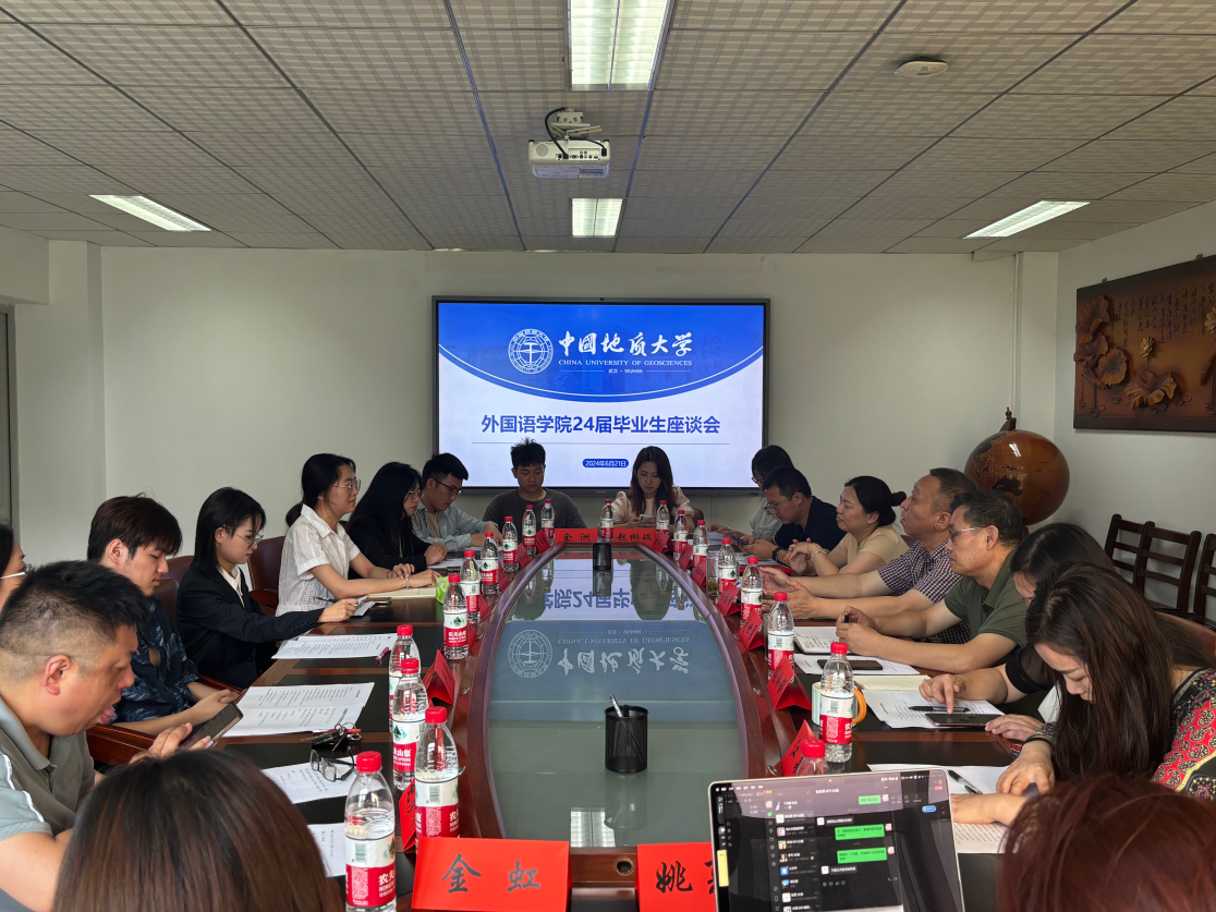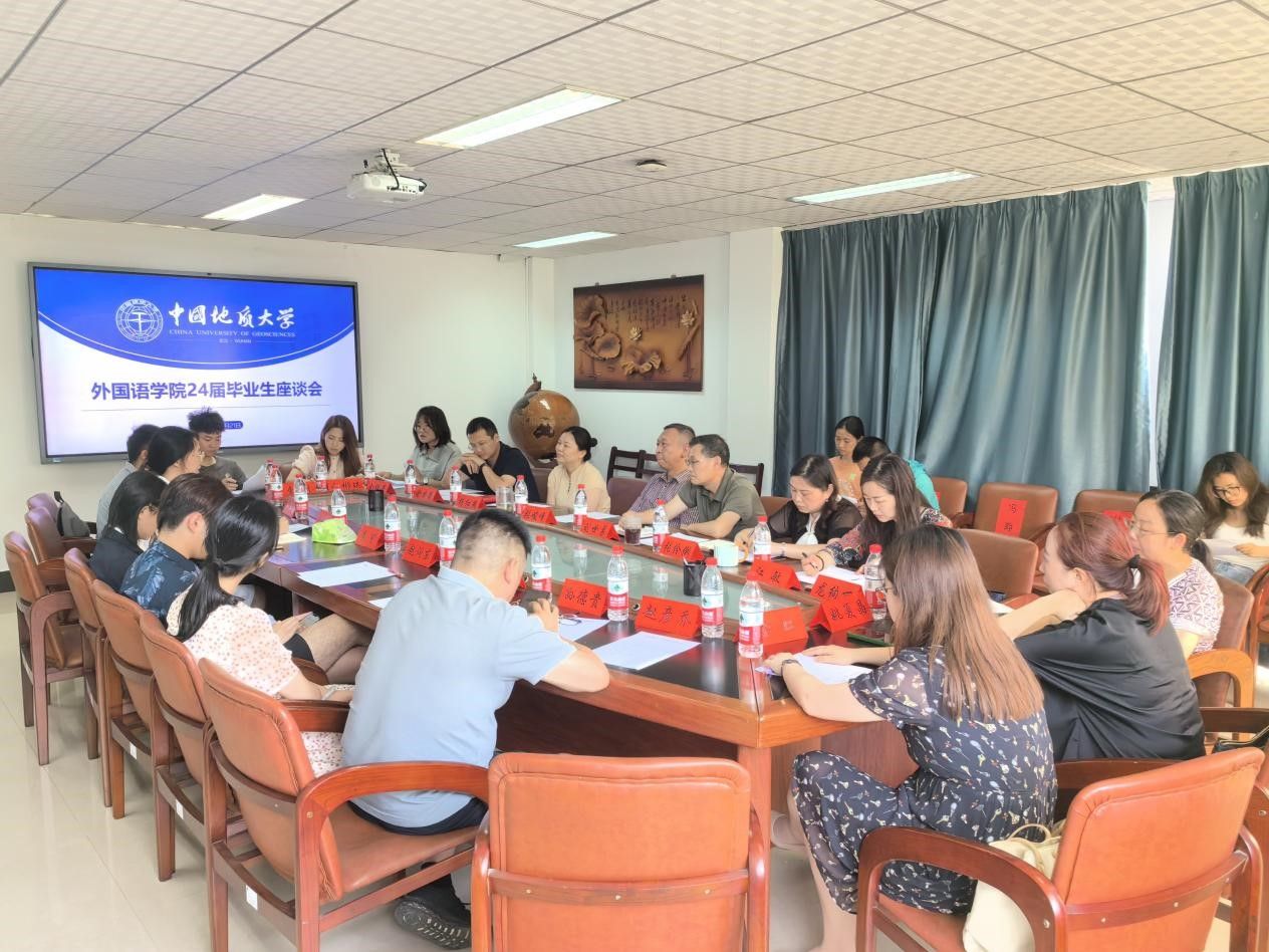 在北一楼344会议室举行2024届毕业生座谈会。院领导刘世勇、张峻峰、杨红燕、张伶俐,英语系主任江敏、姚夏晶,二外部主任龙绚丽,学院研究生秘书、本科生教务负责人、学工组专兼职辅导员以及17名毕业生代表参加座谈会议。座谈会由院党委副书记余尚蔚主持。
