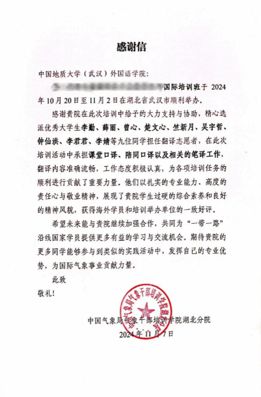 11月7日,中国气象局气象干部培训学院湖北分院给91论坛