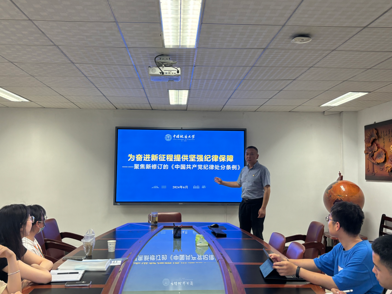 会议开始,张峻峰院长为同学们介绍了新修订的《中国共产党纪律处分条例》,分别从背景意义、历史沿革和使用原则三个方面向大家具体阐述了《中国共产党纪律处分条例》的整体发展情况。他带领团队成员们一起学习了条例的具体内容,从提供纪律保障、加强纪律建设和完善纪律规范三个维度归纳了党纪学习要点,为党员同学们指明了努力方向、奠定了理论基础,也给足了底气和信心。